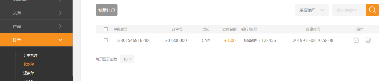 点击收款单可以看到新生成的收款单